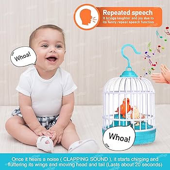 TALKBACK MUSICAL LIGHT BIRD CAGE WITH 2 BIRDS BEAUTIFUL TOY